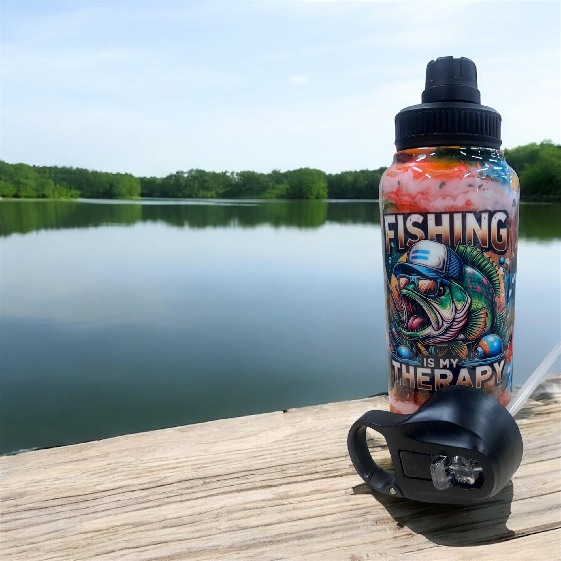 This 32-ounce stainless steel tumbler features a durable epoxy finish designed for long-lasting use. It includes two versatile lids and a straw, offering flexible drinking options to suit your needs. Ideal for outdoor activities like fishing, its sturdy construction keeps your beverages secure and insulated throughout the day.